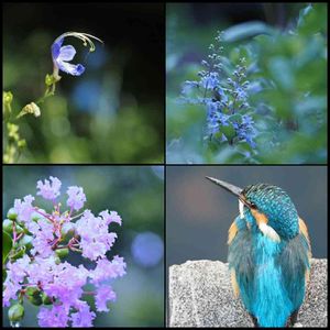 ㊗️チーム・ブルー5000pic突破! ↖カリガネソウ ↗ハマゴウ ↙サルスベリ ↘カワセミ(番外編) これからも青と紫のお花を探しましょう👀