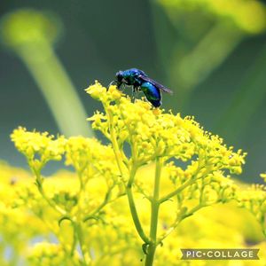 秋の七草のひとつ、オミナエシ💛 訪れているのは、見つけると幸せになれる?ブルービー💙のオオセイボウ(大青蜂) 初めて出会いました✨ 🏷日銀ビタミンカラー♪ 🏷日曜日は日本を感じる和の花 🏷あ.にまるの日 🏷青い花マニア番外編・虫や鳥