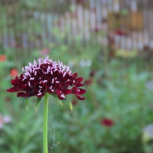 一年草 濃赤スカビオサです❣️ 以前upしてますが、次々に咲くので嬉しいです🥰 そろそろ種を取っておかないと💦