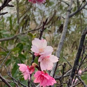 一本の木から紅白(薄いピンク色)の桜の花が仲良く咲いて❤️🤍 散歩する人を見下ろして微笑んでいるみたい🌸🥰