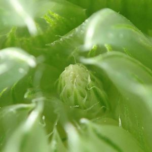 冬の日の朝は透明な窓を持つハオルチアが映える。このエメラルドLEDも名前の通り,まさにLEDのような輝きを見せてくれる。