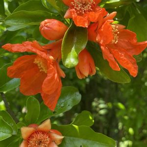 おはようございます。\(//∇//)\ 今日のお花です。ザクロ‼︎ 大阪市立長居植物園🪴で咲いていました。過去のpicより🤗🤗 3枚組です見てね!👍👍