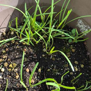 おはようございます😃🌸〜 写真は、ガーリックチャイブです。 結構長く伸びているので、今夜餃子🥟に使いたいと思います❣️ 大分前に種から育てたガーリックチャイブです。母が喜んで使っていますよ。