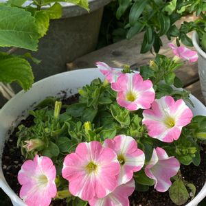 おはよう御座います😊 昨年採種したサフィニアから この子が生まれました🌸🌸🌸 種は混じっていたのか、どうなのか 分からず❓ ももいろハート💓💕♥️ の様なお花が咲きました♪♪ 良かった👍🎶💓♥️