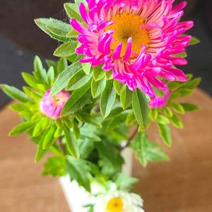 おはようございます。 25日の切り花 4日経ちました。花が、開きました。 アスター。 種蒔きからのアスターです。 鮮やかなピンクの花と 白い花が、可愛いです。 暑い夏は、毎日花瓶の水を替えてあげると、花が長持ちします。