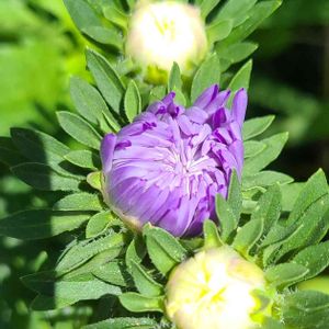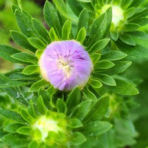 こんにちは👋😃 種蒔きからの 切り花用アスター混合。 一昨日より、少し開きました。 薄紫色の花のようです。