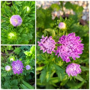 こんばんは😃🌃 種蒔きからのアスター 花が、咲き進むにつれて変化しています。 白から薄紫から、少しピンクがかってきました。 不思議ですね。 花の向きを、揃えてコラボさせた方が、わかり良かったですね。