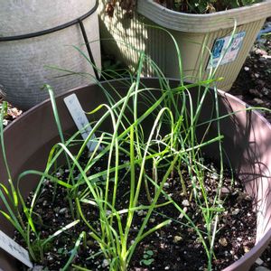 種蒔きからの、ガーリックチャイブ❣️ 近くに寄っただけで、ガーリックの香りがします。 宿根草で耐寒性はとても強く、とても美味しい野菜です^_^💕 切ると次々と伸びて来て何度も収穫できます。 今夜はガーリックチャイブとエビ🦐豚肉の炒め物です❣️