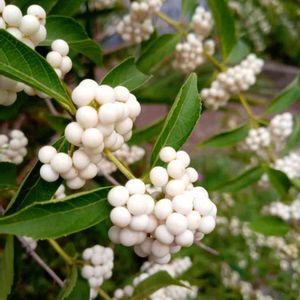 コムラサキ(小紫)の白い実バージョン。調べた所、小白式部、白実小紫とありました。 頭がこんがらがって覚えられません🤍😄🟣