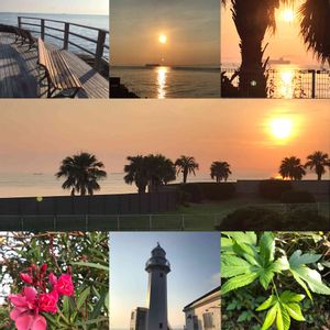 今朝の観音崎🚢 私の生まれた 横須賀の夜明け𓇼𓆡𓆉𓆡 ⋆*❁*𓆜 𓆝 𓆞 𓆟𓆝𓆟𓆜𓆞𓆡 日の出は5時02分 曇って☁️居たので20分後にやっと太陽が🌞 既に目の前の東京湾は漁船𓂃𓊝𓄹𓄺 コンテナ船 がかなり行き交う🏖🐠☀️ 灯台まで歩き🚶 海に向かってラジオ体操 小学生の体操に勝手に入れて貰った♡ 小学校の遠足や家族で良く来た場所🌴 ソテツ、ヤシ、ハイビスカス🌺 が綺麗💓💞 三密を避けるなら やはり早朝🌅