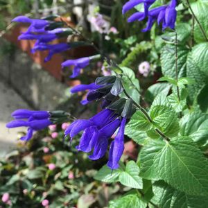 サルビアガラニチカ(メドーセージ) 地植え場所が気にいらず、掘り上げて鉢管理にしてみました。空いた場所にブットレアを植え終えて、疲労困ぱい。ブットレアを植え終えて、ブッタオレてまーす。🤪
