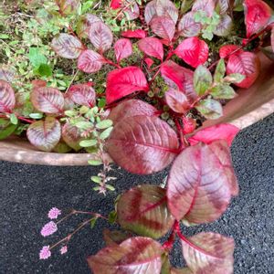 ハロウィン寄せ植えに使用したお隣さんからの侵入者💦ですが、リシマキアのペルシャンチョコレートだと思ってたら、ヒメツルソバだった⁉️花が咲いて正体ようやく判明😅 冬場は枯れてしまうみたいだし、本物を買いに行っちゃうかも…