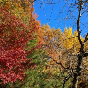 東山動植物園 ♪ 植物園の奥の方の紅葉🍁が見事でした。 動物園の方もあちこち紅葉してて綺麗でしたが、ここは、格別でした。 お天気も良く、連休だったので、激混みでした。でも主に屋外なので、気持ち良く歩けました。 鹿やイノシシも丸呑みすると言うコモドドラゴンや、コアラ🐨、あと今話題の熊🐻も、見てきました。 蝦夷ヒグマは、ものすごく大きかったです。近寄って来られたら、腰を抜かすサイズです! あとゴリラやチンパンジーも、どことなく人に仕草や座り姿が似てて、親近感を覚えました。