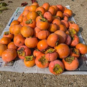 ①②③ 甘柿(富有柿)の収穫 今年は豊作で 毎日10個程採っては食べていました🧡 今朝見ると 10個近くヒヨドリさんによる被害が…😳 1つずつ綺麗に食べてくれるなら良いのですが これはたまらん💦 高枝切り鋏を取り出して収穫しました🥰 数えて見ると120個以上! 木にはまだ40個はあると思う 鳥さんも召し上がれ😆 ④鳥さんに空けられた穴!横のも 食べられています ⑤モミジの盆栽(そのつもり) 3年程前 庭で1cmくらいの 赤い物を見付け鉢植えにして 育てて来ました🥰🍁 目指すは根上り盆栽🤭