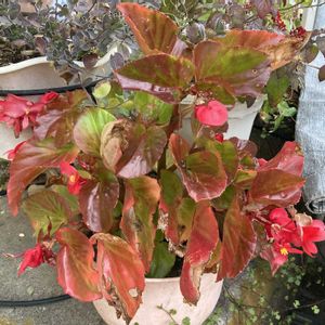 ベゴニア ルシエルさん 紅葉してます🍁 ① 玄関前のおひとりさま 全体的にきれいに紅葉してます✨ ② 庭の寄せ植えさん 陽当たりがイマイチなとこだから? まだ緑色ですね 一緒にいるジュズサンゴ さんは 紅葉っぽいです☺️ 届いたのが 8/10 なので そろそろ3ヶ月 まだ咲いてます♪ 寒いの いつまで大丈夫かな