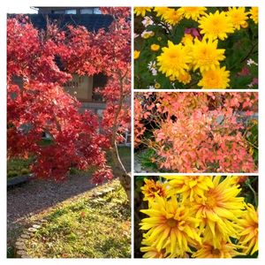 おはようございます☺️ 左・我が家のノムラモミジ🍁 新芽から落葉まで、濃い赤紫色の葉を一年中楽しめるのが、特徴だそうです🤗 夏場には、緑色💚に変わりますが、秋には濃い赤紫色に戻り、季節ごとの色の変化が魅力です🎶 右・散歩中に見つけたビタミンカラー💛🧡のキクと、ドウダンツツジです🤗 朝は冷え込むものの、比較的過ごしやすい日が続いています😉