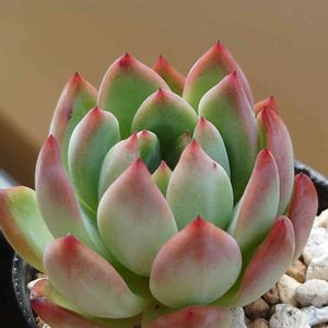 おはようございます😃 今日も雨ですね☔️ ✨デレッセーナ×ロメオ✨ 成長点周辺がピンクになってきました💕 ロメオ交配はこれからいい色になりますね🥰 先日、久しぶりにカイガラムシ被害が出て大切な多肉ちゃんをいくつかもぎったり、チョンパしたりしました😭 もう少し早く薬💊を撒けばよかった〜と後悔🥲 時期を逃さず薬剤散布することが大事ですね😅