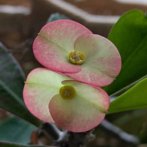 ユーフォルビア・ミリー(八福神)。中の花も開きました。ほんのりバラっぽさを感じます。もう少し開くのかな、すぐ横の花とケンカしそう😂 中にはちゃんと雌花と蜜腺がありそうです。 隣の花柄は普通に咲いてたのに予想外な事をして楽しませてくれるのも花キリン系の持ち味です。(枯れてるやつがその普通に咲いてたほうの花ですがまだしっかり付いてて取らせてくれない😂)