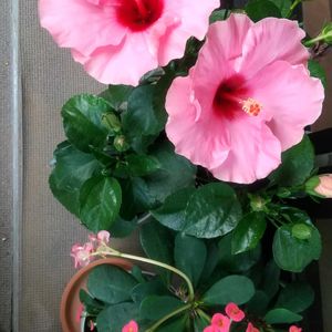 誕生日に頂きました🌺🌺 ピンクも可愛いですね。 ロングライフではなさそうだけど、2日くらいは咲いています。 風が強いので中に入れようかな。 ただ蕾が多いので 動かす度に 🌺ぽろぽろ落ちてます💦