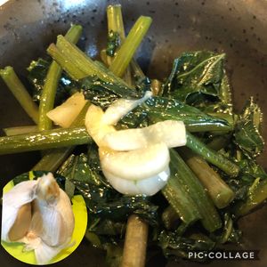 サツマイモのつると葉を、自家製のニンニクでにんにく炒めにしてみました。 さつまいものツルと葉は、クセもなく筋っぽさもなく、思った以上のおいしさでした! これならお浸しや汁物、なんでもありだと思います。(ほうれん草のように使えます) 美味しいけど芋を太らせたいので、とりすぎ注意ですね☺️