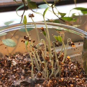 マイクロトマトを潰して、バーミキュライトにプチュっと撒いておいたら、ぞくぞくと発芽。しかし、表面にはうっすらカビが💦やはり果肉を洗わないとかびやすいですね。 このマイクロトマトは水耕栽培で育ててみます🎵