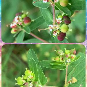 🌿オオニシキソウ🌿 (トウダイグサ科 トウダイグサ属) お花に見えるけれど 可愛い実💓 …と書いて心配になる。花🌸ないよね💦 写真 やっと確認したら 白い花だった。投稿してたのも忘れてる💦 地面這わずに 立ち上がってる🌿で、オオニシキソウかな😊 あまり目立たない。こんなに可愛いのに💕写真に撮らなかったら 通りすぎてた草花😊 一年草。寒くなったら枯れてしまうね。でも、一つの中に種が3個💪 一杯あるから 来年、また凄いね。 枯れかけも撮ってね😆行くね👍