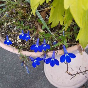 こんにちは👋😃 シャキシャキの鉢植え 紫の可愛らしい花さいてます☺️なんの花┐('~`;)┌