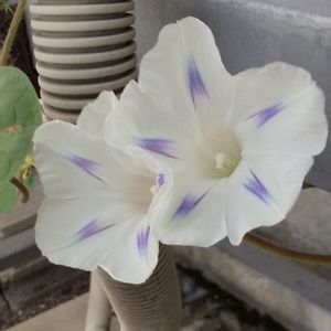 今晩は🌃 窓辺の下に置いたのですがつるが石油タンクに絡まってホースに花を咲かせました👏👏