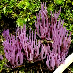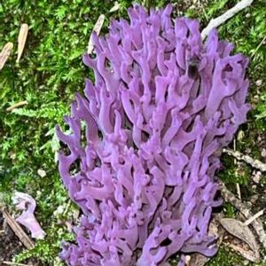海の中のサンゴのような不思議なキノコ ムラサキホウキタケと教えていただきました💜 シロソウメンタケ属
