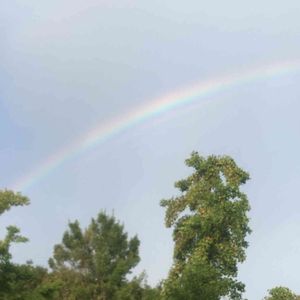 おはようございます 朝 母と公園でラジオ体操してたら 🌈が出てました。 嬉しいです! 今日も頑張りましょう 右のイチョウの木に銀杏がたくさん実ってます