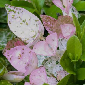 🍀ハツユキカズラ🍀 春先にカットしたので今回は錦にならないかと思っていたのですが・・・ 可愛く色づきました。🤗🎶🎵💕 今日中国に旅立つ浜家のパンダ🐼たち・・ 淋しいなぁ〜😅💦💦💦💦 7年前に買ったクッキー缶で 🏷パンダの日 🏷2のつく日は斑入りの日 🏷斑入り見つけ隊♪ に参加させて下さいね。