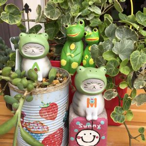 🏷毎月6日はカエルの日 🏷カエル仲間 参加させてください🙋♀️ 華ちゃんから頂いたヘデラ シルバーチャーミー雪ほたる🍀元気デス♡ 華ちゃんからのアーモンドネックレスが入ってる🍓リメ缶はさくら餅子ちゃんより♡ 🐸被り物しれっとネコちゃんは みたりんちゃんあんずちゃんより♡ てるてる坊主ブロックは かっきーちゃんより♡ 🏷繋がりに感謝です🙇♀️