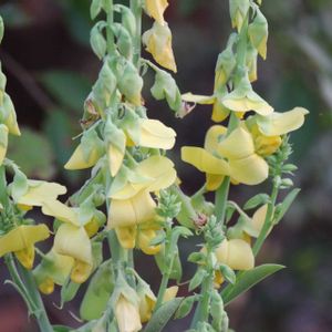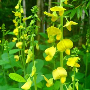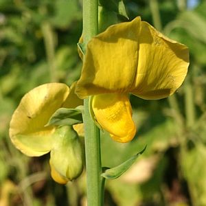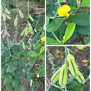 コガネタヌキマメ マメ科タヌキマメ属 はじめましてのお花です😊 フェンスから黄色いマメ科の花が飛び出していたのを撮らせてもらいました。 サヤが大きかったので、大きな種が入っているのかなぁと思ったら、小さな種がたくさん入っていました。 振ったらシャカシャカとまるでマラカスのような音がしました。