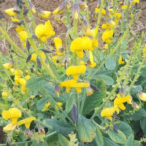 コガネタヌキマメ 今頃畑で見かけるこの花 背丈ぐらいあり豆みたいな鞘が出来てます。 センダイハギにそっくり!