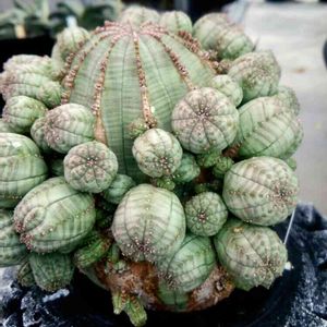 ユーフォルビア属。オベサ。多肉店の展示品。北風小僧がやって来ました