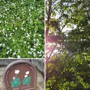 4月中旬 板橋区のニリンソウ群生地 看板には生育地と表記されていますね。 手作り感が微笑ましいです。 ドクダミの葉に囲まれているニリンソウの姿がこれまた可愛らしかったです。 きっと今頃はニリンソウの花が終わり、ドクダミの花だらけでしょうね。 右下、よく見ると平たいキノコあります😁