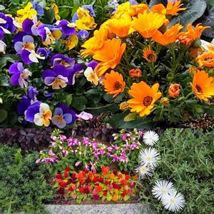 上→引きの写真を拡大したので画質悪いですが… 右が今日の主役 ディモルフォセカさん🧡 下→ケイトウとフクシアの組み合わせが鮮やか 右にいるのは白マツバギク? 初めて見れましたっ