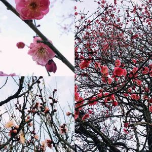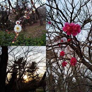 野川公園の梅 前の家にあった梅は右の種類かも? 左下は梅とは関係ないですが最近グッとくる夕焼けです👍️