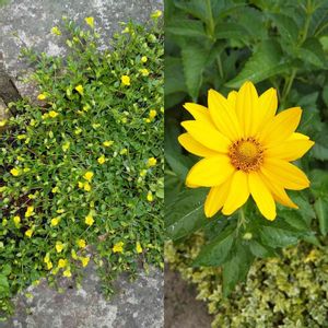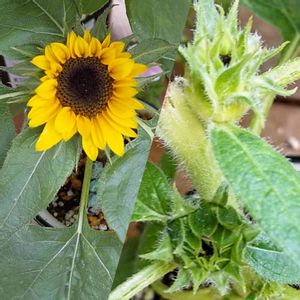 自宅のミニヒマワリ 左は咲きかけ 右は蕾2つ