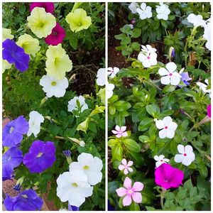 今日のお花 ニチニチソウ 左はペチュニア(サフィニア)
