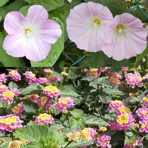 左上は山に咲いていた花(5/24投稿) 右上は近場によく咲いている花 ほぼ同じ色とサイズですが、並べると形が違うのがよくわかりますよね😮 皆さんが住む街や働く街には、どちらのタイプが咲いていますか? それとも、どちらも見ないですか? 下はピンクのランタナです。 後でオレンジのランタナも投稿します。 苦手な方、ごめんなさい!