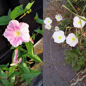 右が今日のお花のツキミソウでよいのだろうか? ヒルザキツキミソウのことならば、これで正解なはず。 ツキミソウに種類があるのかわからないけど。 調べろって話か(^o^;) 左は駐車場の昼顔です。 いや、夕顔かも。 色々と自信がないっ💨💨