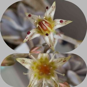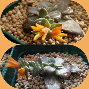 花が咲きそう&咲いたシリーズ ②銀明色(エケベリア属) 植え替えて早い段階で葉がボロボロになったのに花茎?花芽?は順調に伸びていき花が咲きました🧡 調べたところ、花を咲かせるために力を使い葉が弱ることがあるそうですね。 でも朧月はそんなことはないのです。 奴だけは、やはり別格なのか?