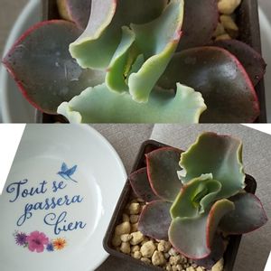 ダイソーの多肉と小皿 *表面に見えている砂は別売り(ネット購入)のもの 多肉のタグはエケベリア属 名前わかるよって方、是非コメントください🙏 Tout se passera bien フランス語で「大丈夫」「なんとかなるさ」みたいな意味らしいですが読み方は不明➰