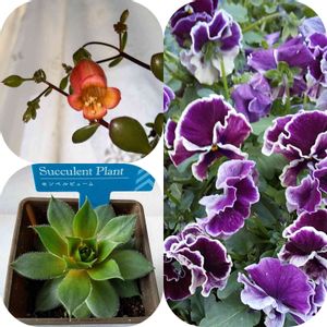 ずっと放置だった皆様の優しいコメントに、やっと返事をさせていただきました。 今さらすぎて、すみません。 これで600投稿目になりますが、お祝いコメントは不要です❌ 左上→紅提灯が開花 左下→ダイソーで買ったセンペルビューム 右は夏ぶりに行ったグリーンライブセンターにて💜 新アイコンに採用しました。 プロフも少し修正しました。