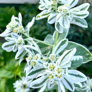 種まきからの初雪草(ユーフォルビア・マルギナタ)🌿昨年の玄関花壇に植えていた苗からタネをとりました。 風に揺られる姿が涼しげ🌿原産地の北アメリカでは草原や牧草地に群生しているそうです。 2、3回摘心すると背が低く草姿が良くなるとのこと。発芽率も良いので来年もたくさん咲かせたいです💚 さすがユーフォルビア✨ユーフォルビア・シルバースワンと雰囲気が似ています😊