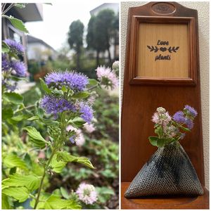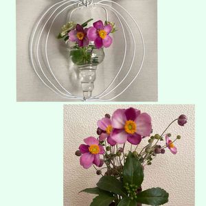 おはようこざいます☀️ 今日も涼しい朝です。 🍀バーベナ よく咲いてアプローチのアクセントになってます。 ワイヤー吊り下げ花瓶作りました。