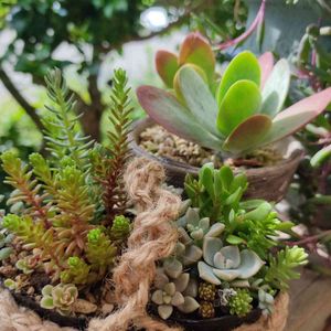 こんにちは(^-^) ベランダの多肉達💕 間延び、ボロボロの子がいっぱい😥💦💦 可愛い寄せ植え、少なくなってきたなぁ〜(っω<`。) 皆んなp(´∇`)q ファイト~♪ ひとさんから、もらったデザートローズさん 💕︎綺麗に育ってるよ😄🎶 可愛い麻かごのセダムも元気。 かごが可愛いと、何を入れてもよく見えるよ(๑>∀<๑)♥