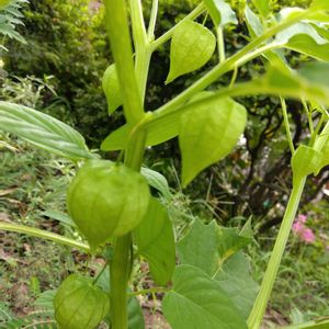 今朝は草取り頑張りました! あまり行くことのない家の東側に、こんなモノが生えていましたよ! ヒロハフウリンホオズキ(広葉風鈴鬼灯) 又は センナリホオズキ(千成鬼灯) お花は控えめ。 コロンとカワイイホオズキ。 開くとやはり実がありますね🟢 確か数年前に田んぼの畦で見かけてGSに投稿したような? それがウチに😱 犯人は鳥🐦かな?
