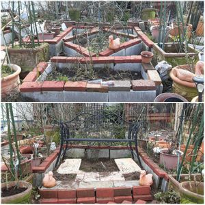 ビフォーアフター! ここのスペースかなり悩んでとりあえず花壇にしてたスペース! 息子が前に買ってくれたベンチガゼボの真ん中には少し大きすぎなのも悩んでました!寝る時明日は何しようと考えてると名案降りてきてとりあえずやってみると、ドンピシャ!良き良き!飽きたら変えればいいし! でも今年とってもお気に入りのスペース!